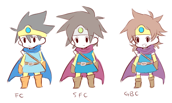 こんくらいで脳内変換してましたー。人によって男勇者の髪の毛も剣山じゃない方もいますしねー。流石に垂直はかわいそうなんで、つい。最近は普通にSFC版あたりですけど。GBCとかだと普通にお胸あるけどぺったんこなイメージしかないのは絶対にFC版のほぼ男みたいなアレが大きい気がします。そんな健気な3女ちゃんも好きです。いいんだよ、無理におっきくしようとしなくても、ありのままでいいんだよ。いいんだよ。